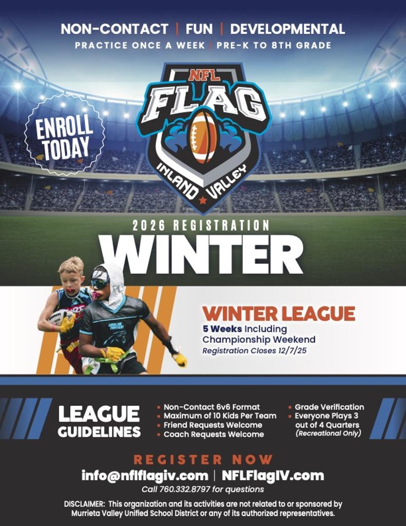 Communications from the league will come from Info@nflflagiv.com and Sports Engine. Please add this email to your contacts/address book or Safe Sender list, so our emails will arrive in your inbox.